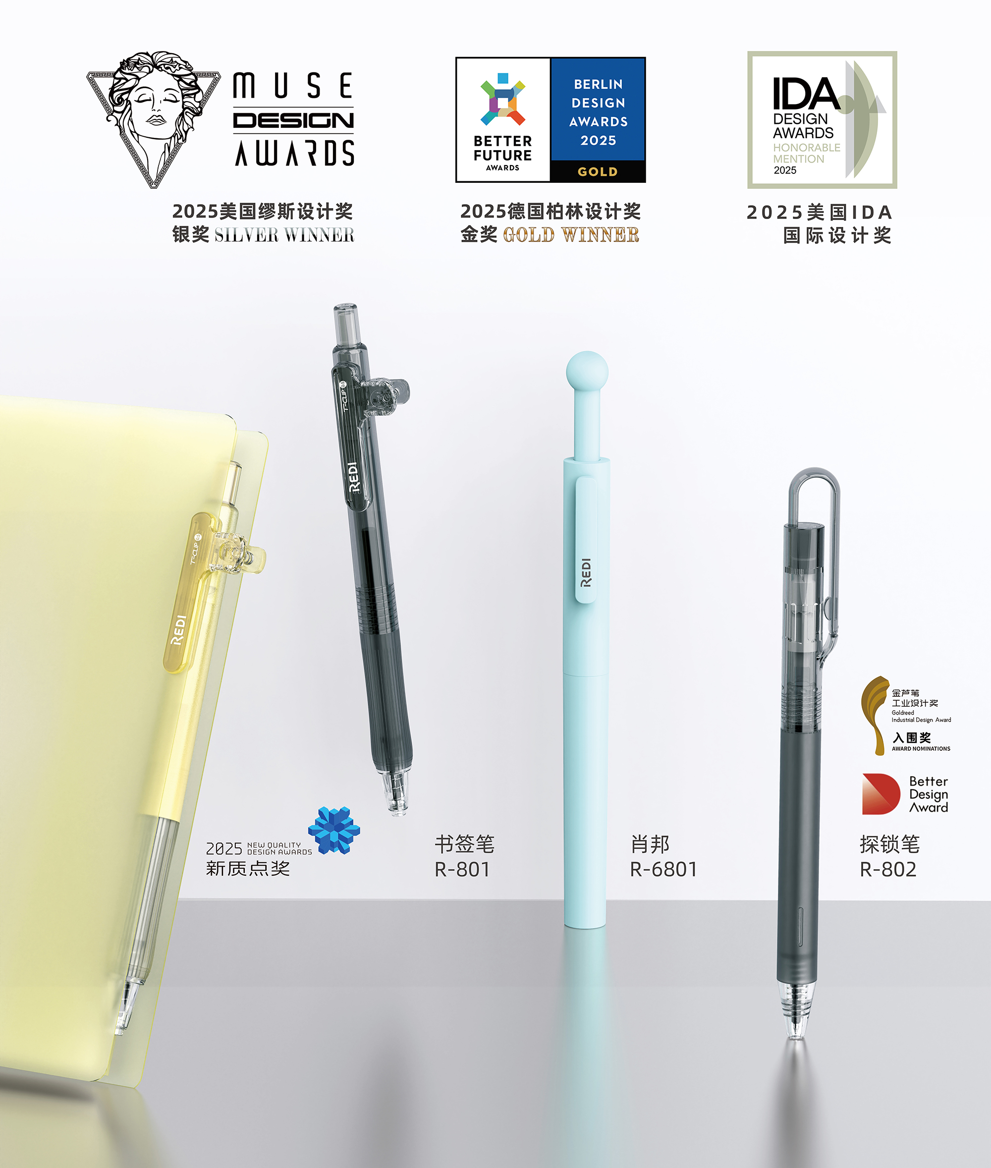 这是REDI乐维继美国缪斯设计奖银奖、德国柏林设计奖金奖后,于短短一年内斩获的第三项国际权威设计殊荣,为中国国货文具赢得世界殿堂级的赞誉,让世界看见中国创造的力量。