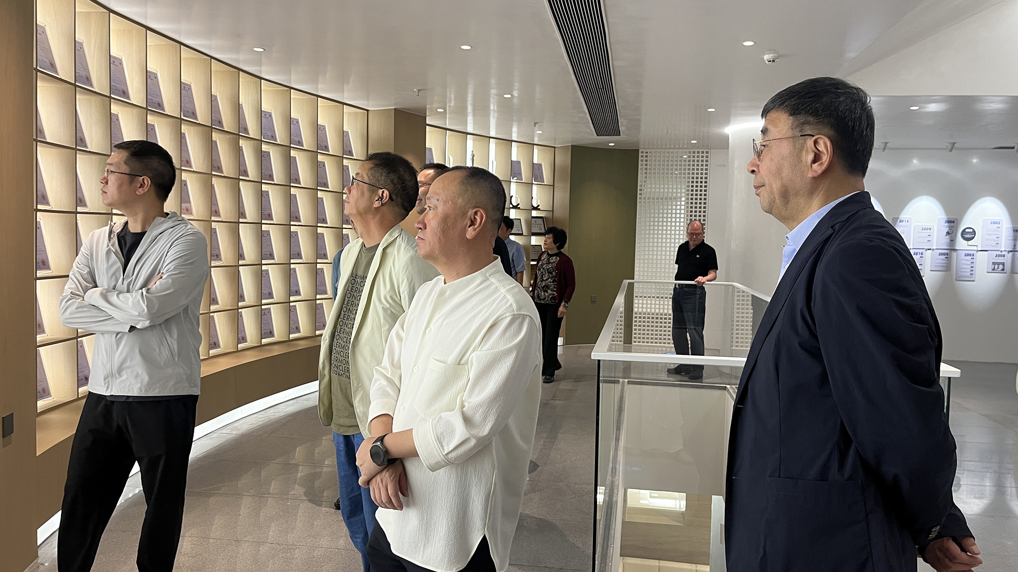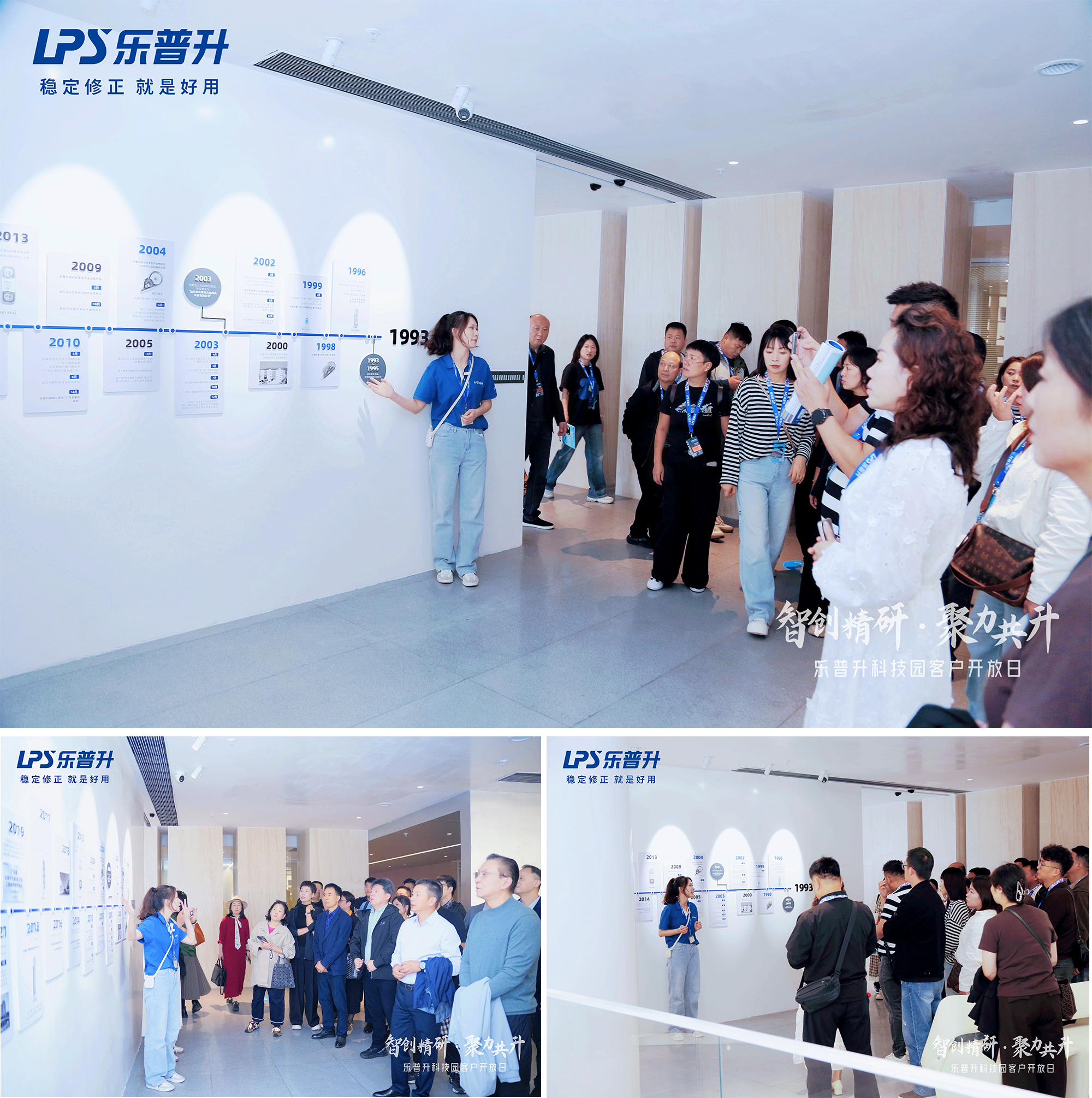 在专业人员的陪同下,嘉宾们首先参观了"乐普升30年时光轨迹"展区,