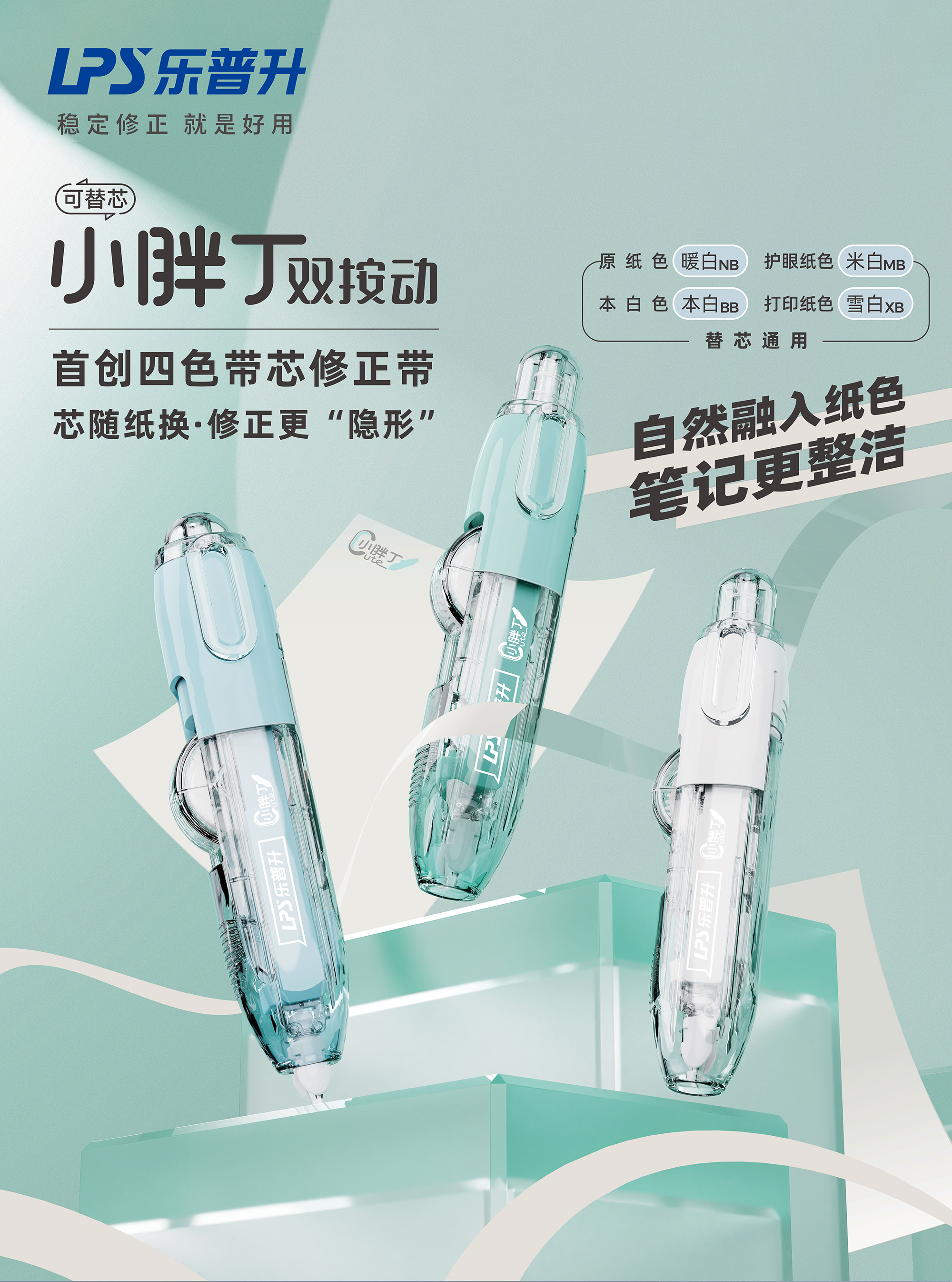 乐普升「小胖丁」双按动修正带凭借首创的四色带芯系统和专利双按动结构,建立起明显的产品差异化优势,满足市场对“隐形修正”日益增长的需求。