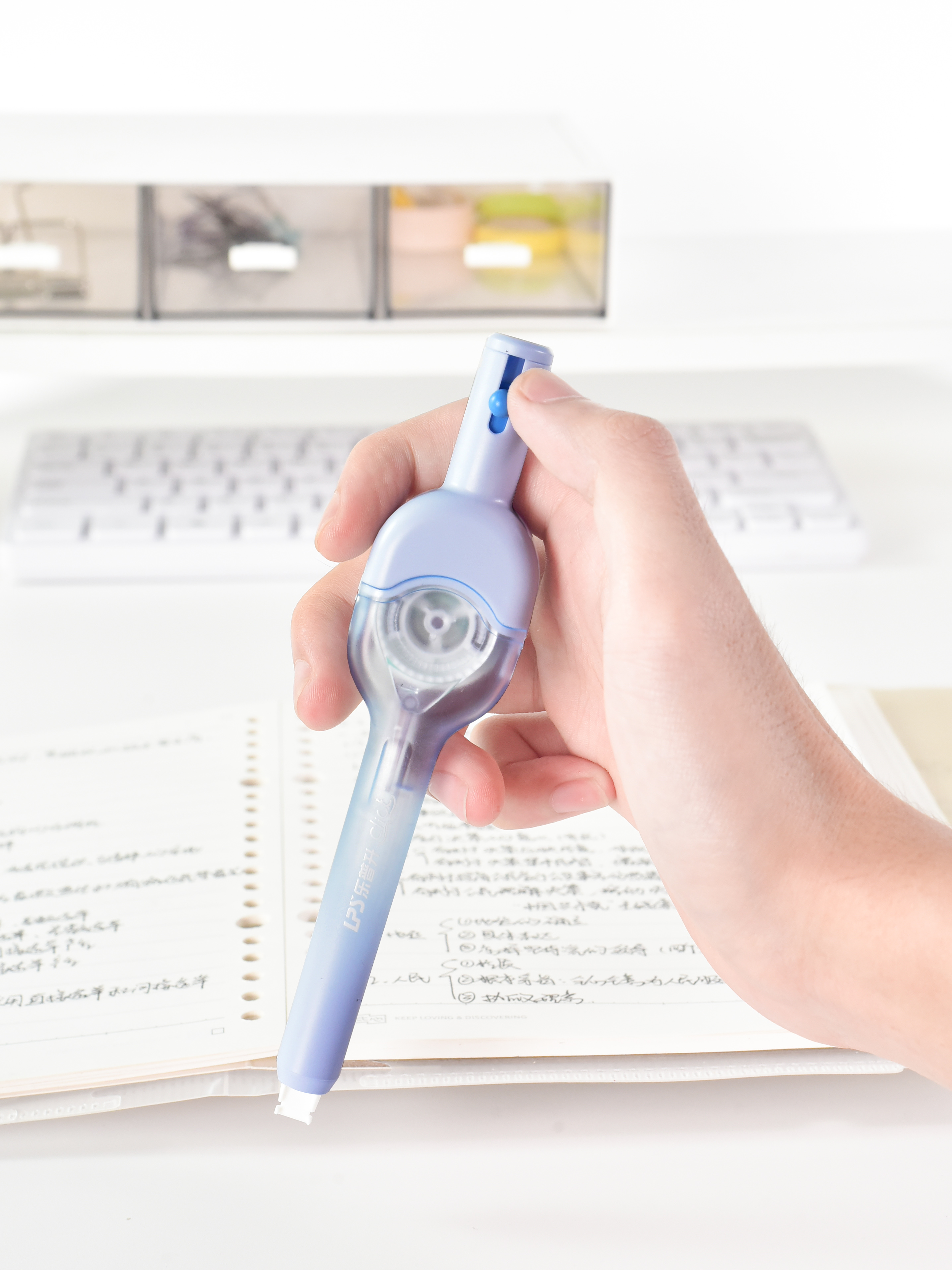 试试乐普升按动笔式修正带,一键解决丢盖烦恼!